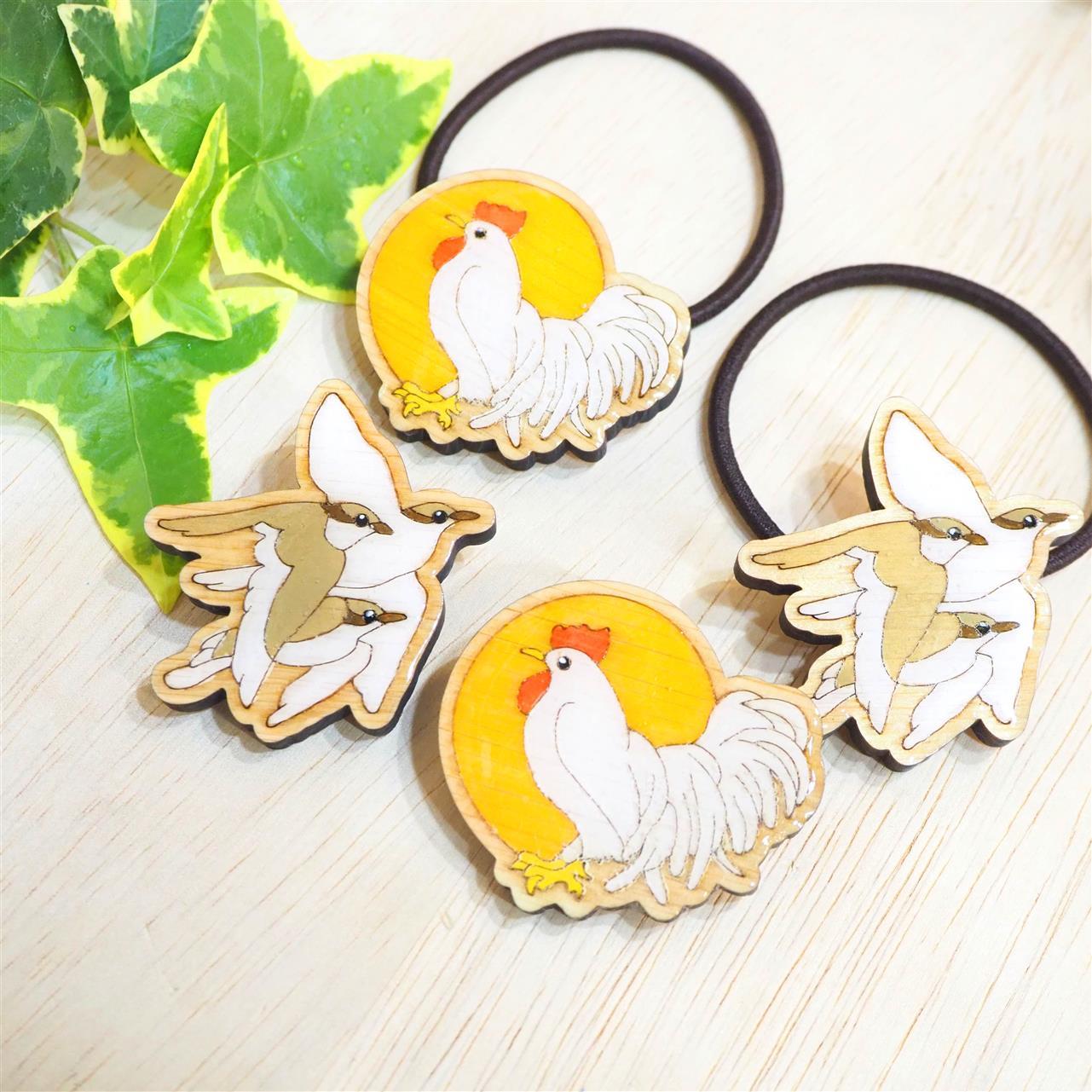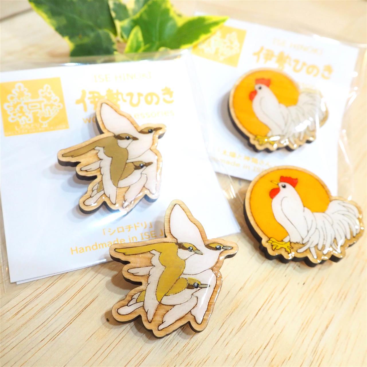 伊勢ひのきのウッドアクセサリーに新作「太陽と神鶏さん」ができました。ー「太陽と神鶏さん」ー「太陽にも例えられる、天照大御神(あまてらすおおみかみ)さま。その神様にお仕えする真っ白なニワトリ、神鶏(しんけい)さん。天照大御神さまが天岩戸に隠れた時に、暗闇から誘い出すため、「常世長鳴鳥(とこよのながなきどり)」を集めて鳴かせたとされています。闇を払い、朝という光を呼ぶ鳥、神鶏。伊勢神宮の境内で、時々会うことができますよ。」☆オリジナル商品はしろちどりWEB SHOPからもお買い求めいただけます♪太陽と神鶏さんウッドブローチ https://shop.shirochidori.net/products/detail/1845ウッドヘアゴム https://shop.shirochidori.net/products/detail/1846