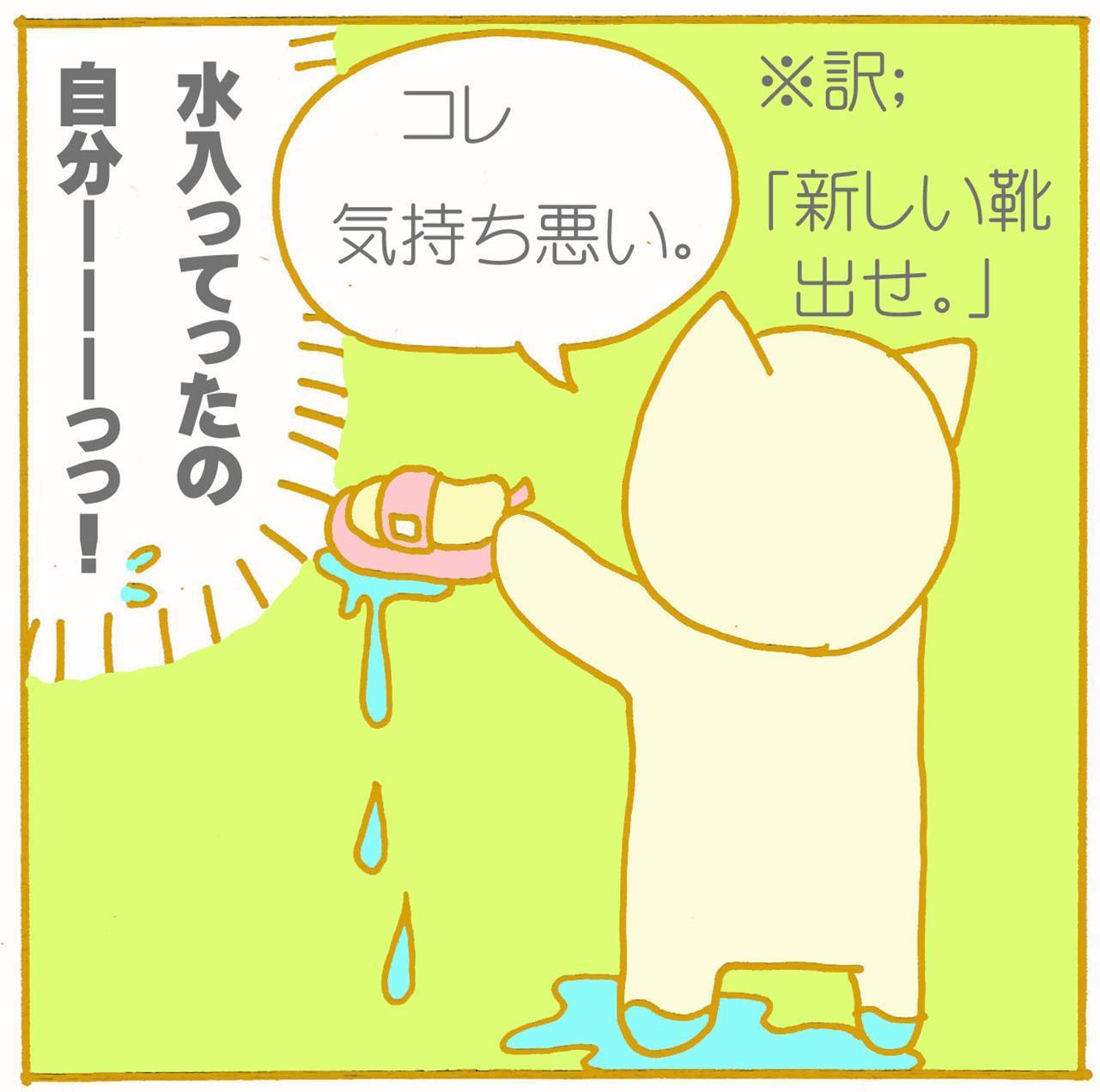 靴が濡れてご立腹でした。