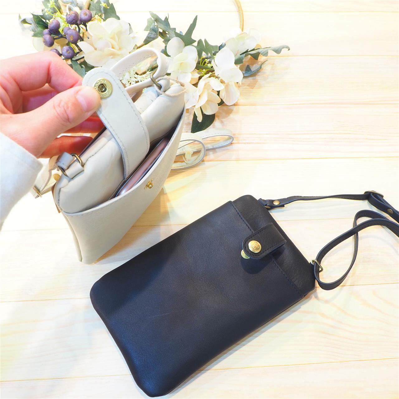 大きめサイズのポシェットウォレットなので、大きめスマホも安心収納♪